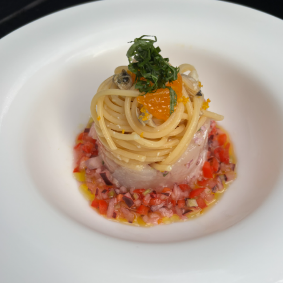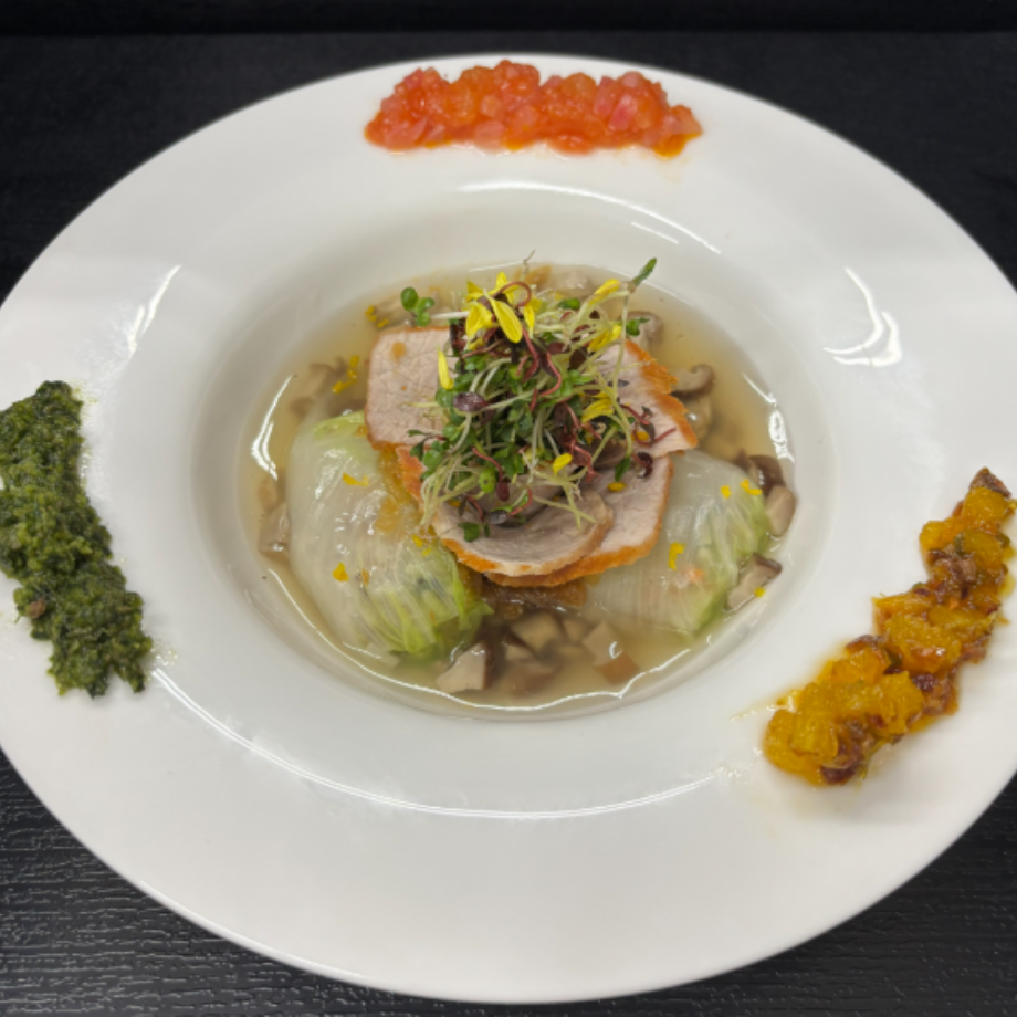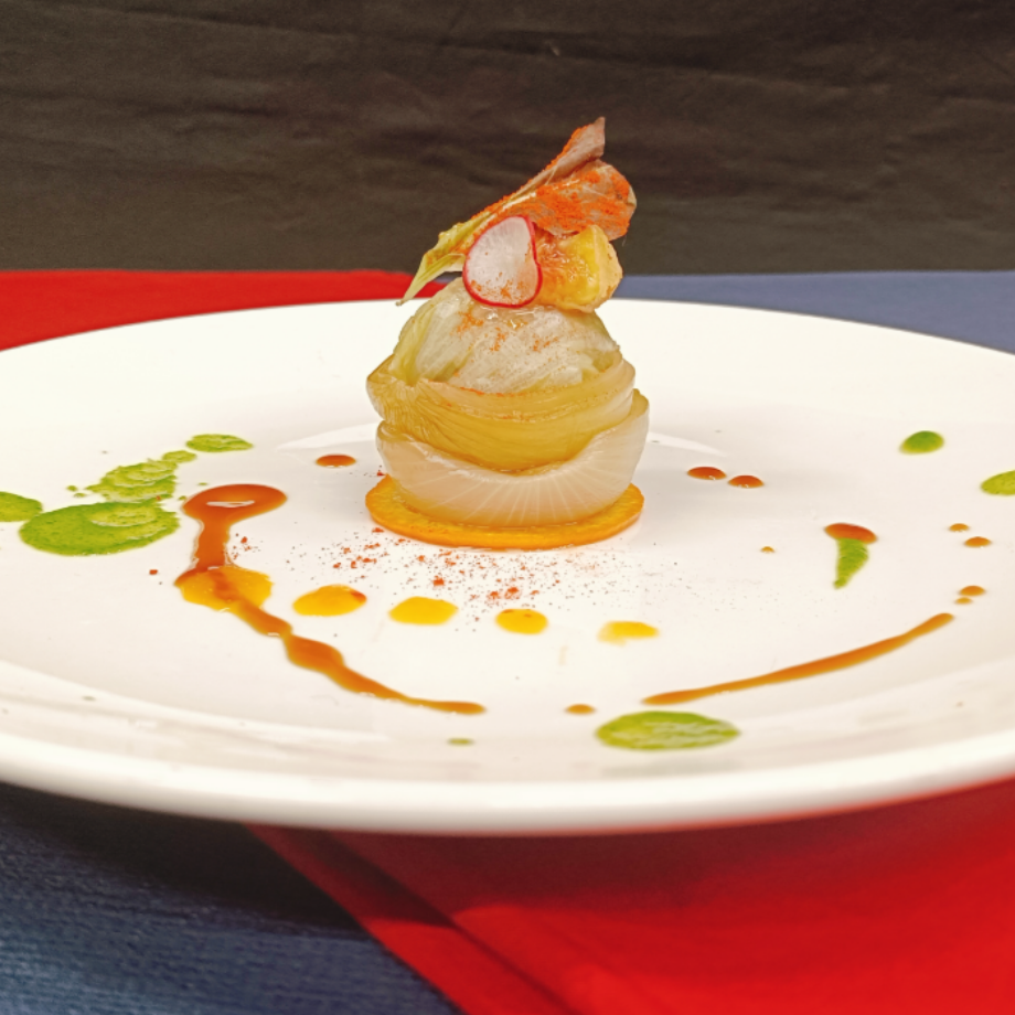 淡路島玉葱と鶏肉ムースのミルフィーユ