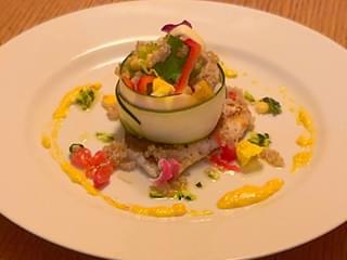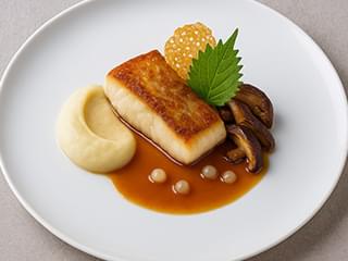 Roasted Japanese Seabass with Satoimo Puree and Yuzu-miso Jus